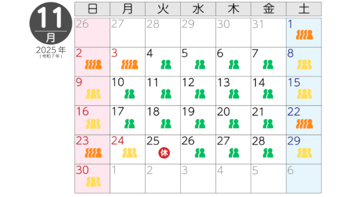 2023月11月12月の熊本グリーンランドの混雑予想カレンダー