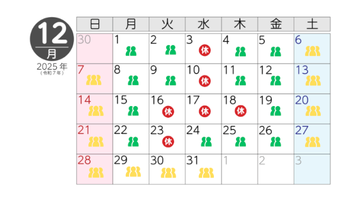 2025年11月12月那須どうぶつ王国の混雑予想カレンダー