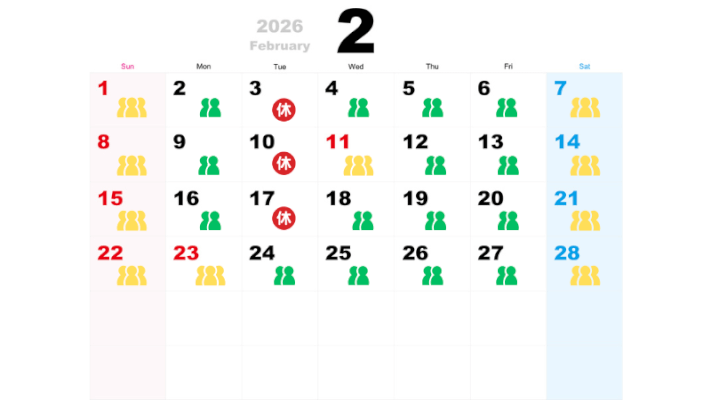 2026年1月2月ポルトヨーロッパの混雑予想カレンダー