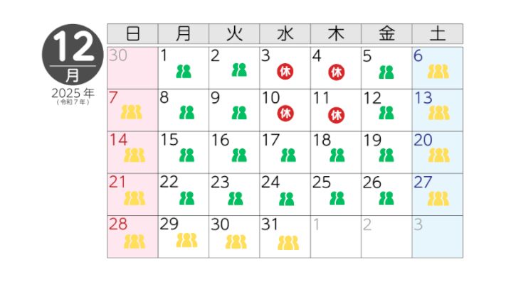 2025年12月2026年1月相模湖モリモリの混雑予想カレンダー