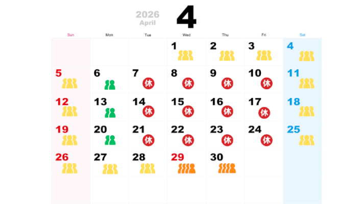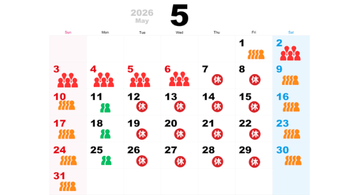 2026年4月5月の東京サマーランドの混雑予想カレンダー