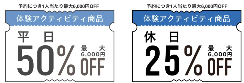アクティビティジャパン平日半額!土日でも25%OFF
