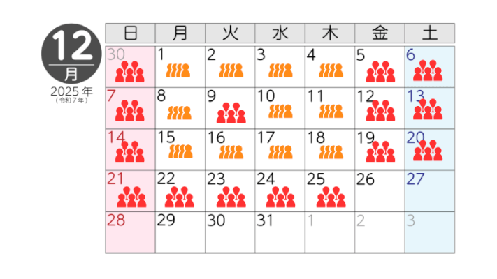クリスマスマーケット in 横浜赤レンガ倉庫の混雑予想カレンダー